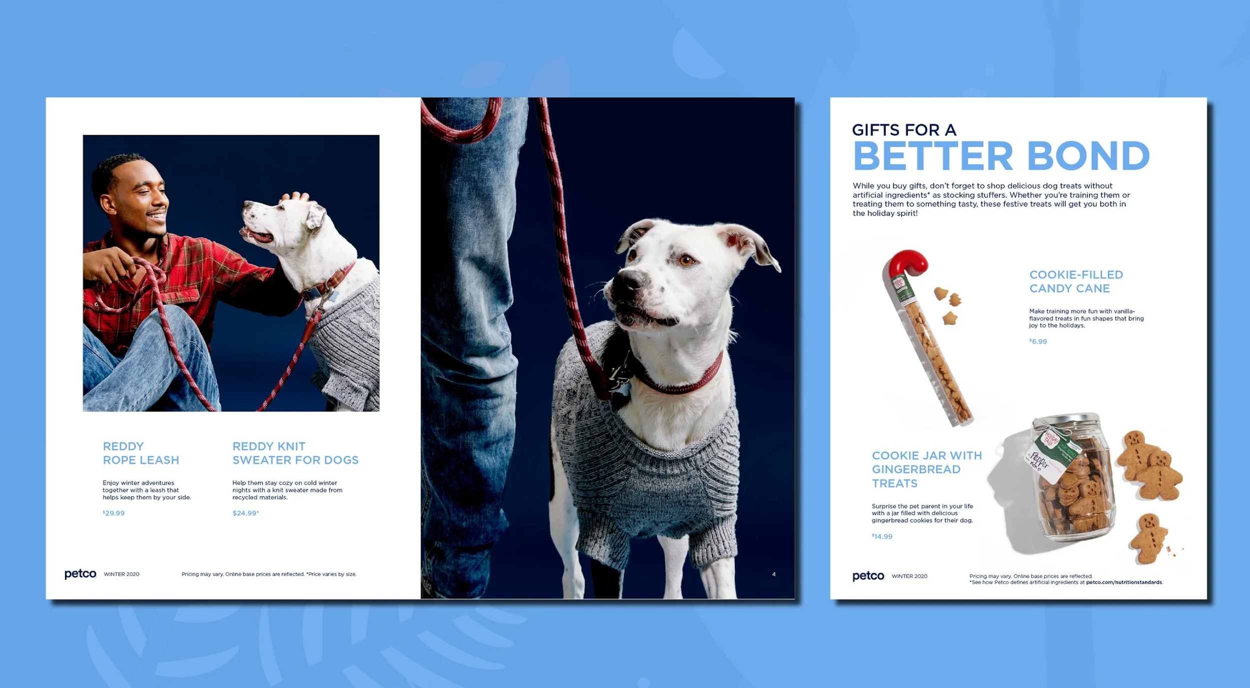 For Petco's 2020 holiday season, the goal was to create a gift guide that moved beyond promotion and into curation. Rather than presenting products as individual items, the lookbook was designed to function as an editorial experience, one that aligned with the existing holiday campaign while elevating the tone to feel intentional, considered, and gift-forward.